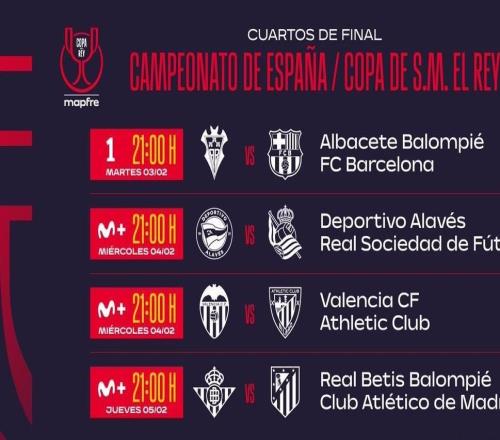 北京时间1月19日,西班牙足协公布了国王杯1/4决赛的对阵形势,此前在1/8决赛中主场3-2淘汰皇家马德里的西乙球队...